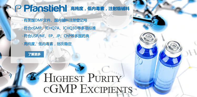 “熱烈祝賀Pfanstiehl的注射級甘氨酸Glycine(G-140)喜獲CDE登記號F20250000403, 這是Pfanstiehl產品獲得的第18個CDE登記號!”甘氨酸在醫藥輔料制劑中應用廣泛,, 可作為緩沖劑,增溶劑,穩定劑等,具有諸多優勢。Pfanstiehl秉承一貫高品質理念,為滿足全球生物制藥行業對于高品質甘氨酸的需求,隆重推出的注射級甘氨酸Glycine (G-140), 具有超高純度,超低內毒素,超低金屬殘留的特點,單獨檢測29種金屬離子,并且新增DNA,RNA,DNA酶,RNA酶和脂肪酶,亞硝酸鹽等多項質量指標的檢測,符合多國藥典規定(USP, EP, BP, JPE, ChP),可用于生物治療性藥物和疫苗的生產。產品信息:· 產品名稱:Glycine, High Purity, Low Endotoxin, Low Metals, USP, EP, BP, JPE, ChP (G-140)· 中文名稱:甘氨酸· 分子式:C2H5NO2· 分子量:75.07 g / mol· CAS號:56-40-6· 產品貨號:G-140產品特點: · 超高純度,超低內毒素,超低微生物含量,超低金屬雜質殘留· 質量指標新增DNA,RNA,DNA酶,RNA酶,脂肪酶和亞硝酸鹽檢測· 符合多國藥典:USP, EP, BP, JPE, ChP· 符合ICH Q3D標準· 符合GMP標準· 已獲DMF和CDE登記號 產品應用:· 緩沖劑· 穩定劑· 增溶劑如果您對Pfanstiehl注射級別Glycine G-140感興趣,歡迎聯系Pfanstiehl 中國區代理商北京西美杰科技有限公司獲得如下詳細的產品概況說明文件和測試樣品。Pfanstiehl Inc.最新產品系列如下,歡迎聯系北京西美杰科技有限公司獲取100g裝免費樣品。北京西美杰科技有限公司為Pfanstiehl中國代理,為客戶提供完善的技術支持與售后服務。歡迎撥打西美杰客服電話400-050-4006或者登陸網站www_xmjsci_com.aspxblogs.com了解更多信息。 更多>西美杰介紹